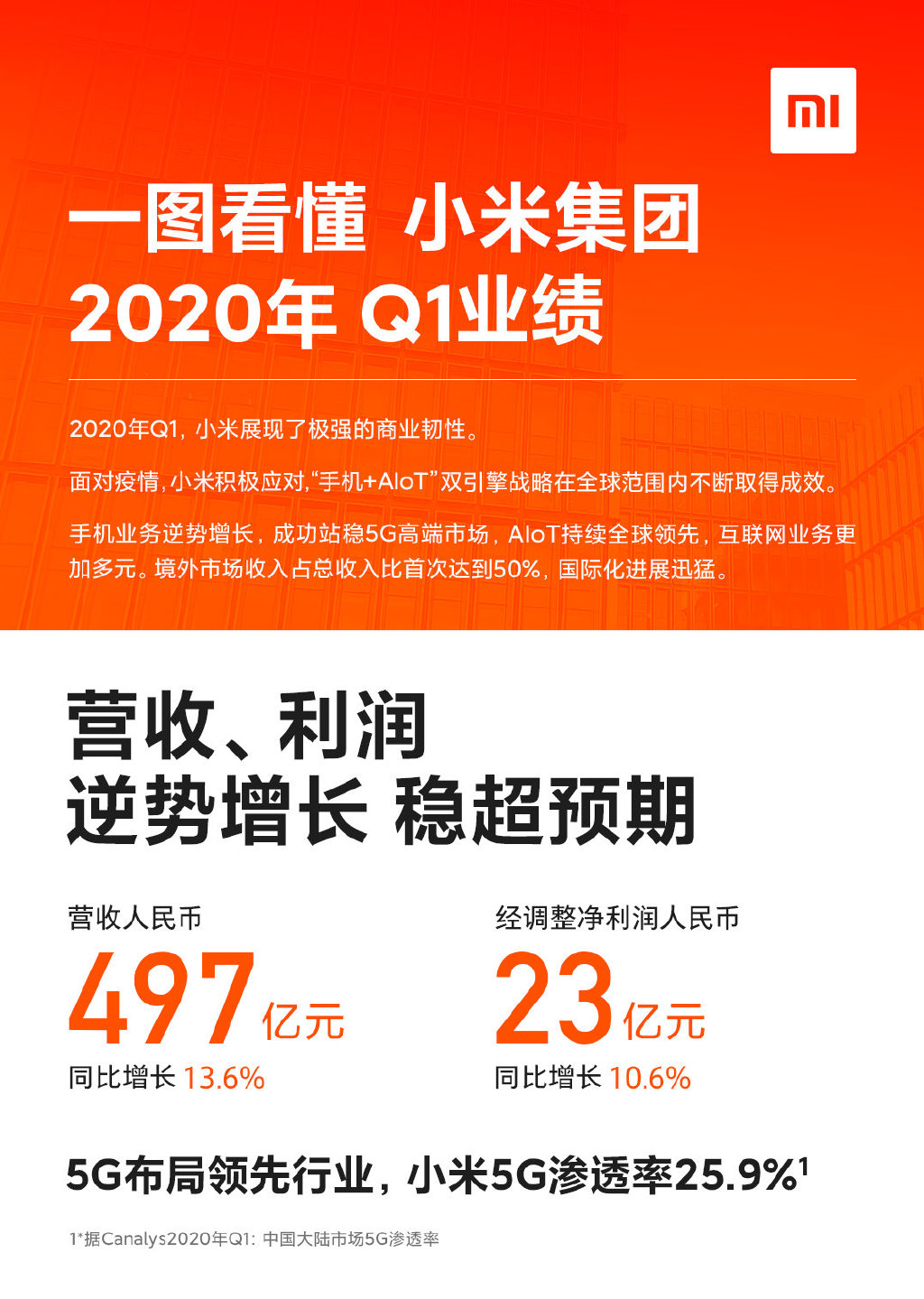 最近,小米集团发布了2020年Q1财报,报告期内营收达到497亿人民币。其中尤为亮眼的是,小米海外市场收入248亿,在总收入占比首次达到50%,同比增长更是达到47.8%,实现逆风狂涨。
