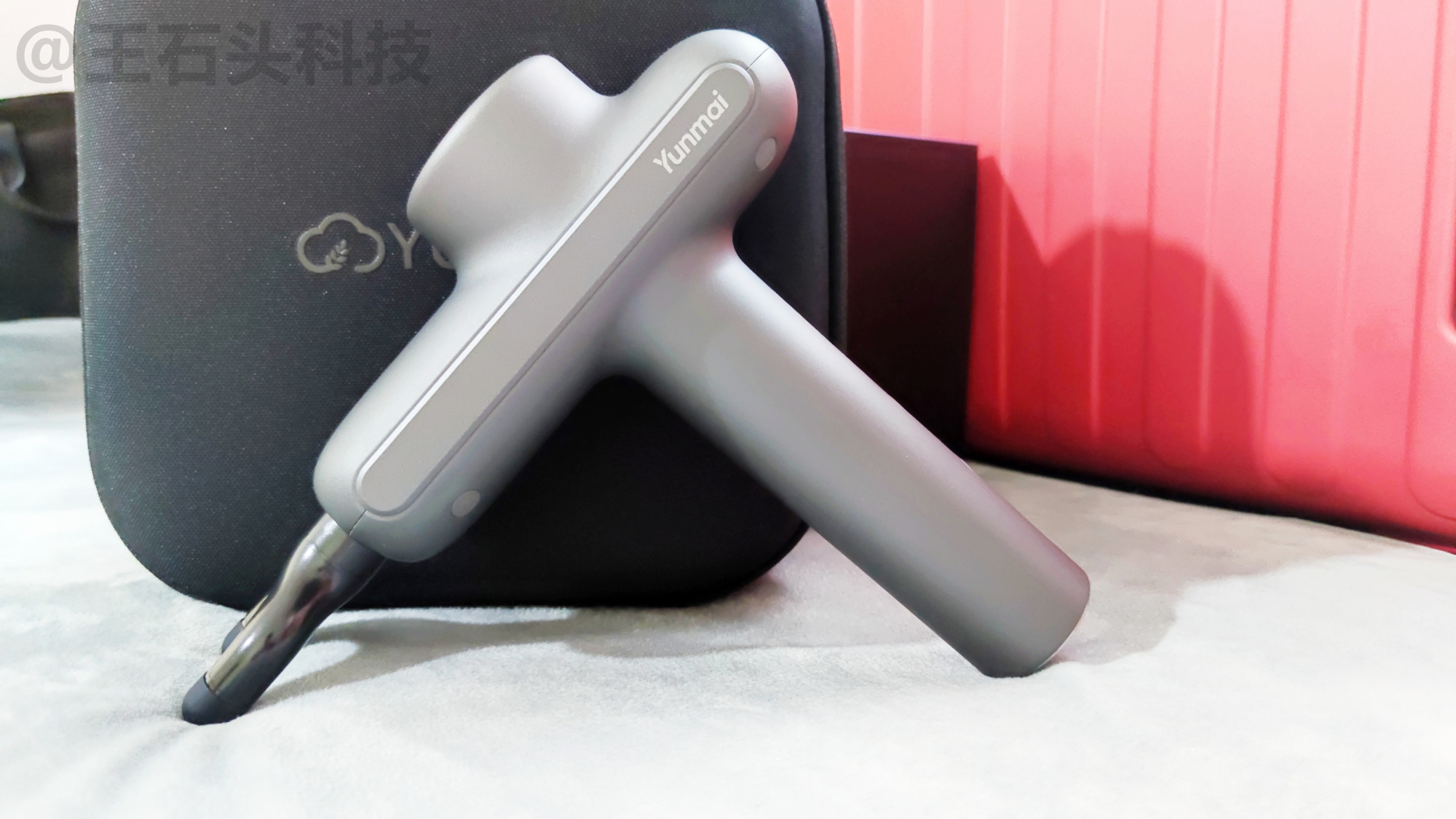 云麦筋膜枪主体为带磨砂的外壳,采用了一些曲线的设计,让整个产品看起来颇有档次,握在手里就像平时用的吹风,很有戴森的感觉,精致得让人看一眼就爱了,难怪它能荣获2020年德国红点设计奖。