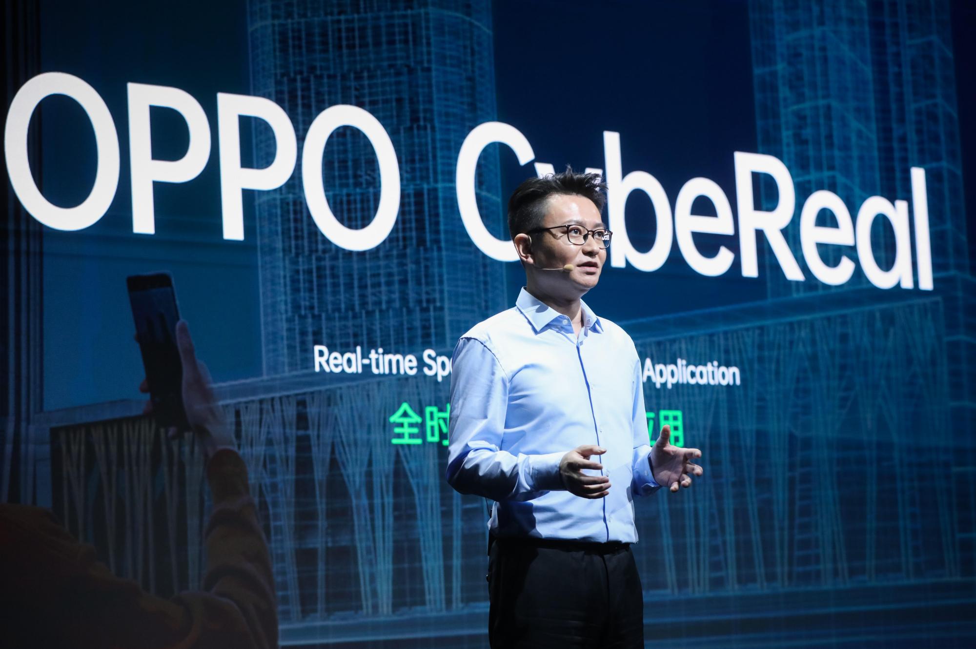 随后登场的则是OPPO CybeReal,它是一款基于全时高精度定位技术和场景识别的AR应用。它可以对物理世界进行数字化重构,大到高楼林立的城市、小到街道的一块路牌;并且它还具备高精度的定位能力,通过融合多传感器的数据以及结合人工智能的分析,能够实现厘米级、1°以内的定位。