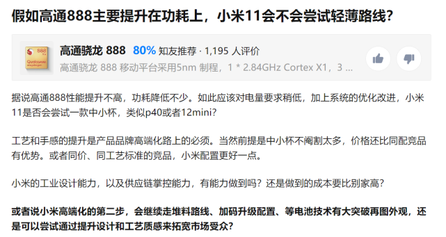 除了硬件方面有一定的提升以外,小米11在外观创新更是引发了全网争议。有网友就提问小米11会不会尝试走轻薄路线,类似P40或者iPhone12mini,推出一款中小杯产品?