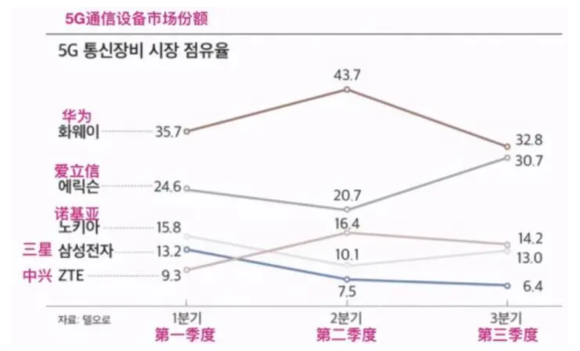 华为份额下滑的问题不可忽视,不出意外第四季度将会被爱立信赶超。