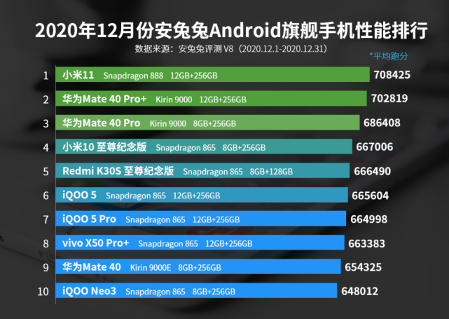 两个多月过去后,现在越来越多的5nm芯片问世,搭载该芯片的手机也已经推出,于是安兔兔12月榜单也迎来了变化,霸榜两个月后的华为Mate 40 Pro,现在辉煌落幕了。
