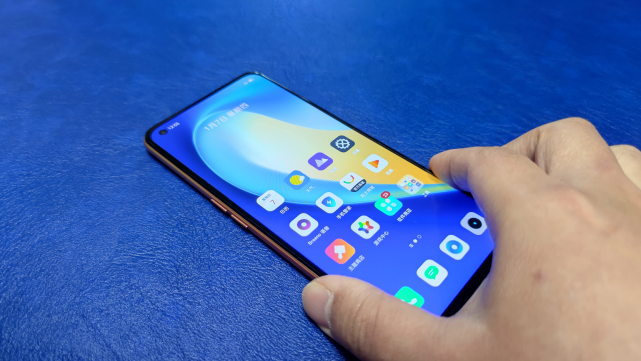 再谈谈这款手机的手感。这款手机的重量只有179克,厚度只有8.3mm(非锦鲤色为176克、8.1mm),满足了市场上对轻薄5G手机的需求。
