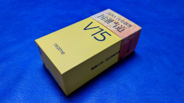 realme真我V15的包装盒沿用了家族标志性的黄色包装设计,在包装盒的侧面还印有「5G闪充手机」,意味着这款手机不仅支持5G,同时还支持闪充功能。