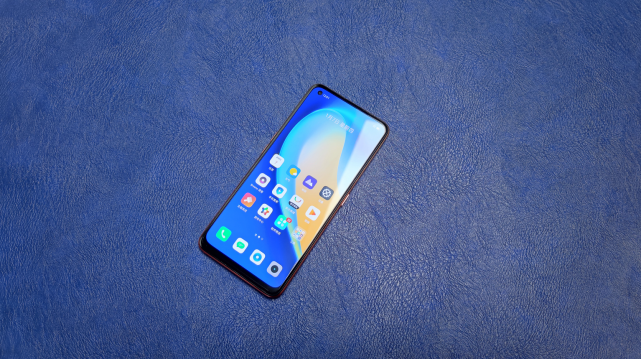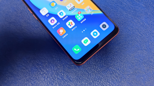 手机的正面,realme真我V15采用了左侧单挖孔AMOLED极点屏,屏占比为90.8%,整体来看下巴还是挺宽的,不过也是受限于成本原因了。