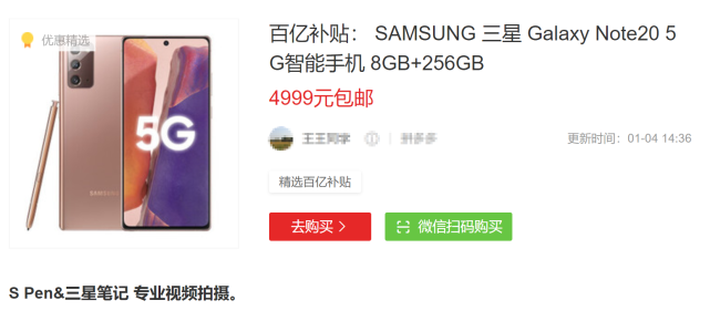 但就在近日,当时定价7399的三星Note 20,如今售价已跌至4999。