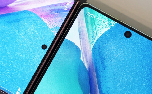 手机正面,三星Note 20配备了一块6.7英寸直角Infinity-O屏幕,一颗前置摄像头位于屏幕最上方的居中位置,这样的大屏机确实更适合这样的设计。