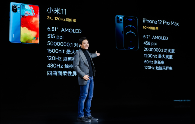 在发布会上,雷军拿小米11的屏幕和苹果作了对比,即便是iPhone 12 Pro Max的屏幕都比不过小米11,就更不用提相比差一些的iPhone 12 mini了。