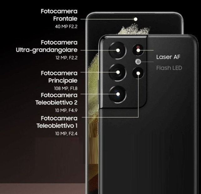 而三星S21 Ultra的相机规格会得到巨大提升,配备了更强的四摄方案,规格为1.08亿像素(F1.8)主摄+1200万像素(F2.2)超广角+1000万像素(F2.4)长焦+1000万像素(F4.9)潜望式长焦镜头,还加入了激光自动对焦模块。