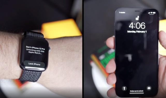其中Apple Watch解锁iPhone无疑是非常实用的一项功能,有了这个功能的支持后,用户佩戴口罩也可以轻松解锁手机了,只需要让Apple Watch靠近iPhone即可。