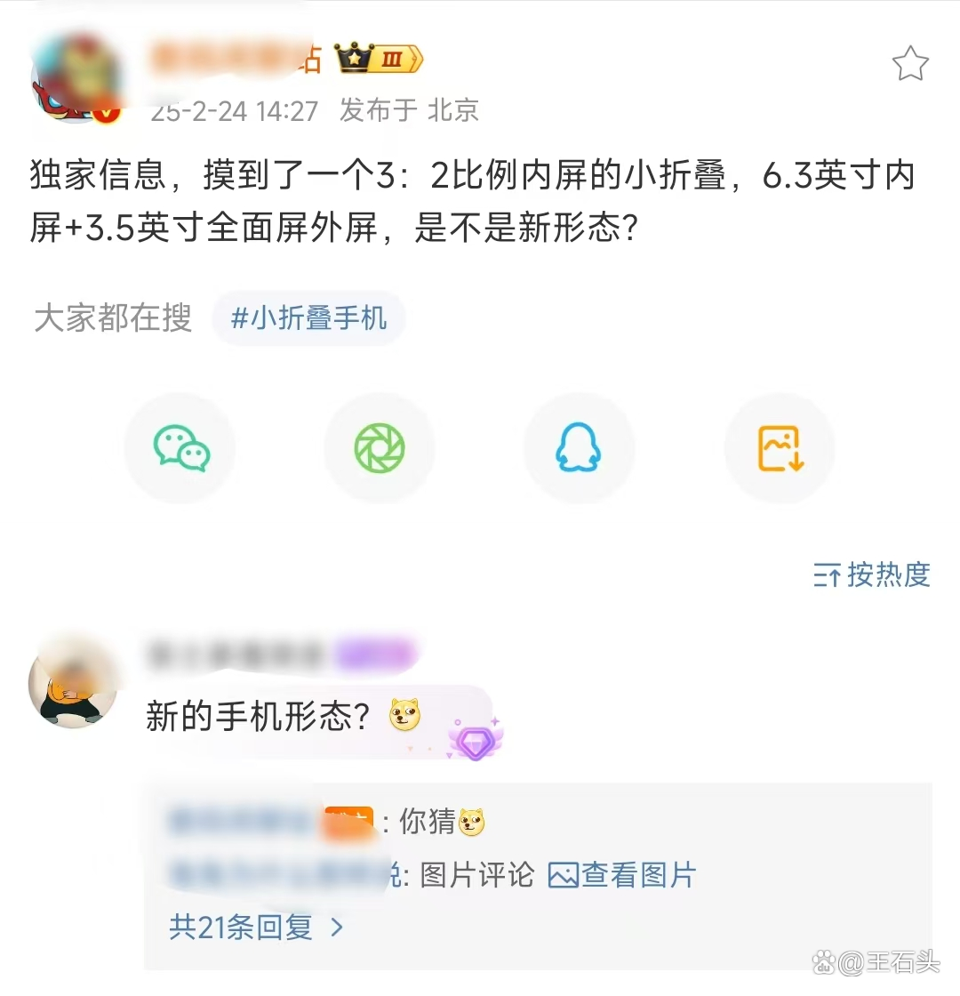 该博主所指的“横竖比例3:2的小折叠,内屏是6.3英寸,外屏是3.5英寸”的手机,大概就是余承东提到的新形态手机。