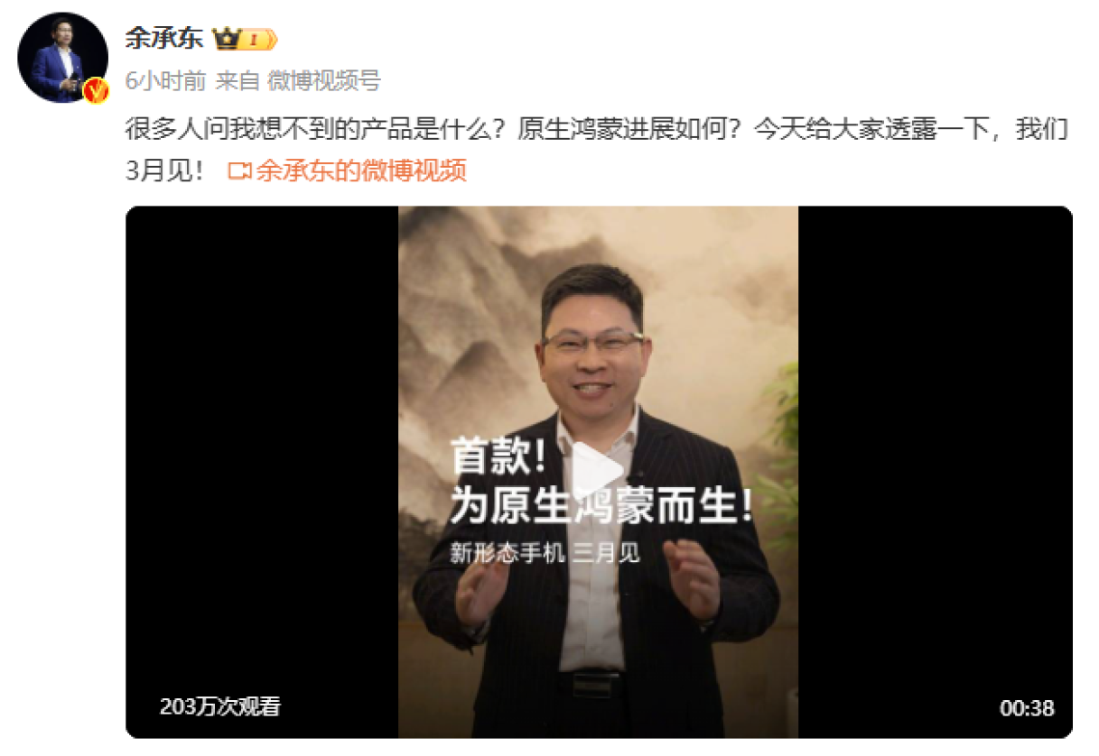 现在已经来到2月的尾声,正当网友们满头雾水不清楚余承东之前提到的是一款什么产品时,现在余承东通过微博官宣了该消息。