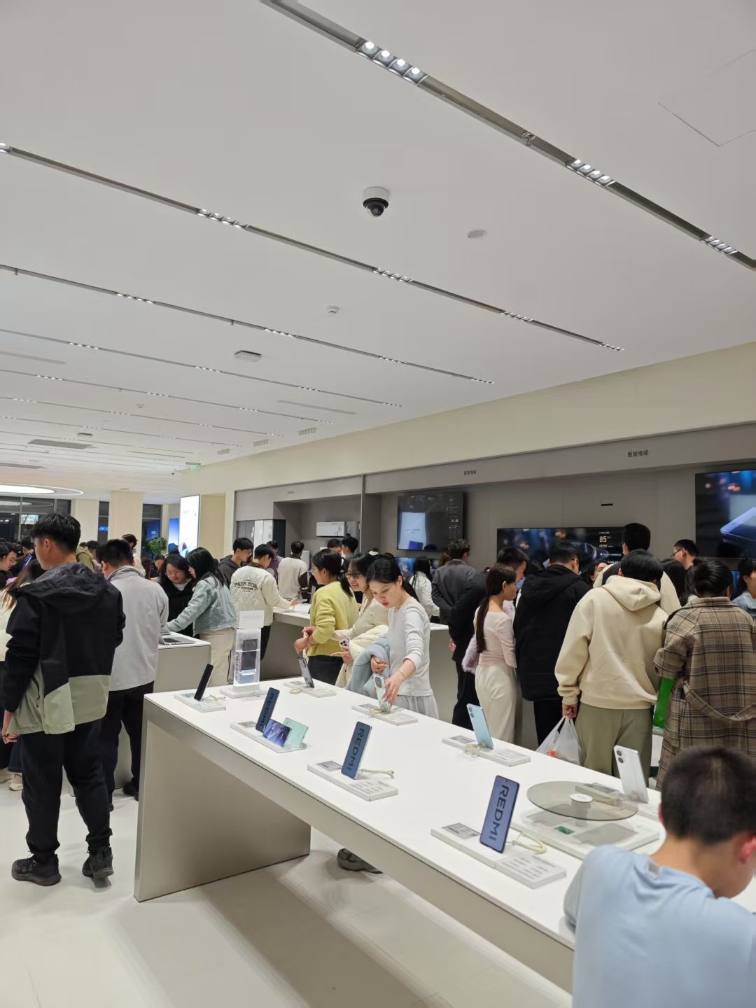 但店内人头攒动,体验新机的队伍一直排到店外,似乎整个商场都是小米开的,导致我难有上手机会。