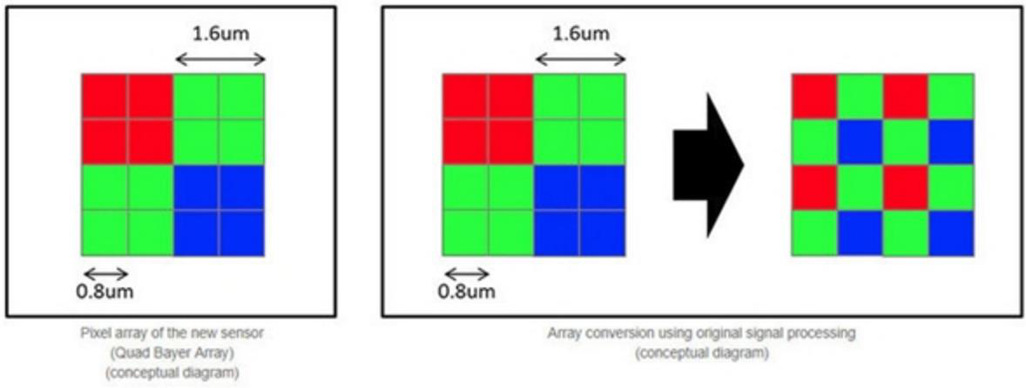 比较华为P20 Pro,该机搭载的是4000万像素的IMX600,同样的Quad Bayer阵列和大像素,但其传感器尺寸(1/1.73)要比索尼IMX586(1/2)更大,单位像素也要超过IMX586的0.8μm。