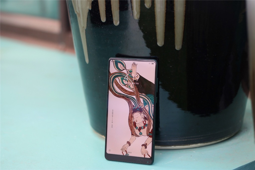 了解到了古人绘画的智慧,我们来到21世纪,如何将科技和艺术融合在一起成为了现代人思考的问题。这次小米开启了全新的艺术探索之旅,将上等孔雀石的绿色融入到了手机中,也就是近期备受关注的小米 MIX 2S 翡翠艺术版,这个手机的色彩灵感就是来自敦煌壁画保留最多最好的翡翠色,原料取自上等的天然矿物孔雀石。