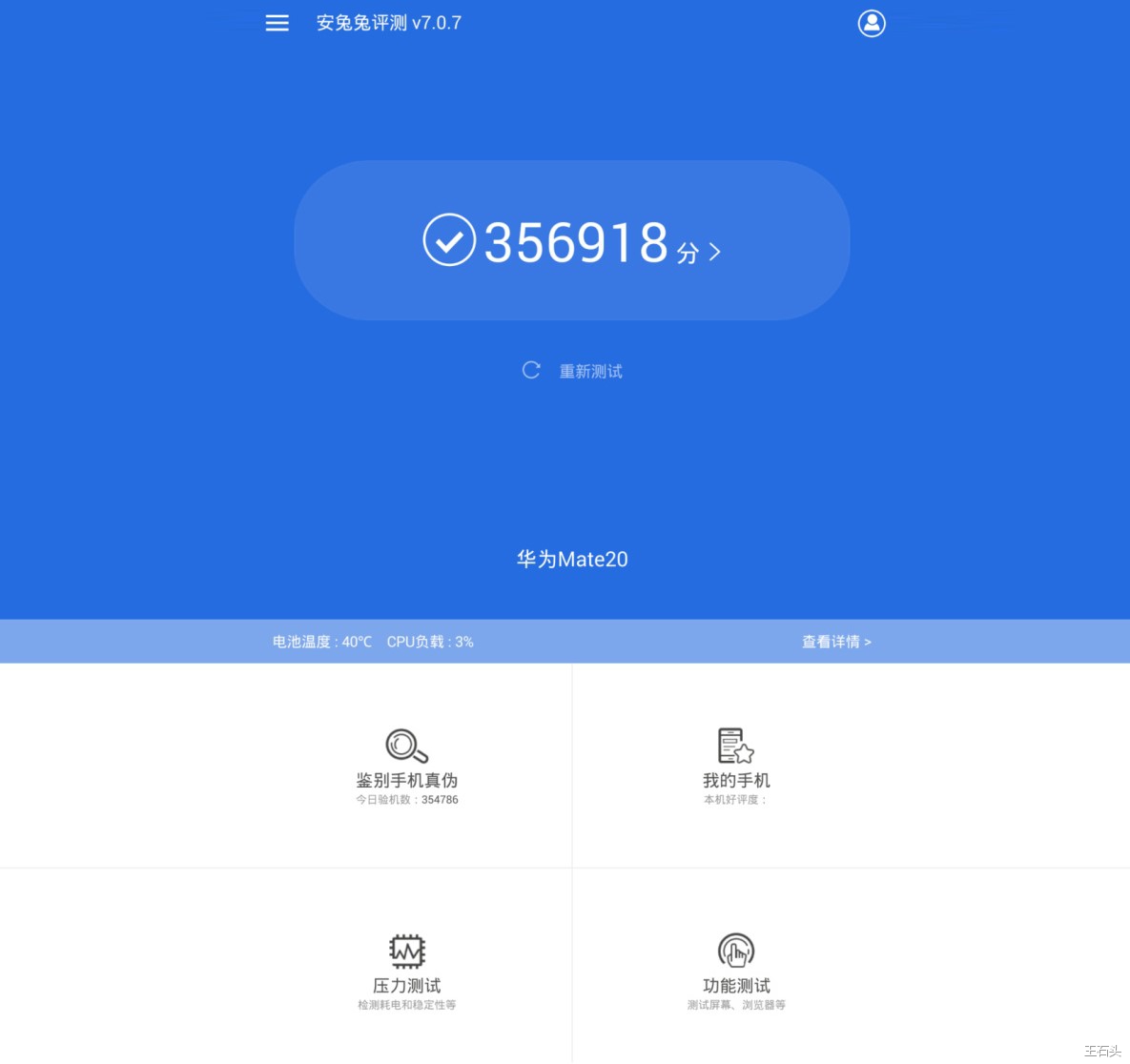 前些时候有网友曝光了Mate20安兔兔跑分,分值高达35万,如果这一切都是真的,那么搭载麒麟980的Mate20系列将会成为今年下半年乃至明年很长一段时间的机皇,甚至没有任何对手可以挑战,毕竟搭载骁龙845的机型中,跑分最高的也只有30万。你们期待这款华为新品的到来吗?关注王石头,带你一起长知识!