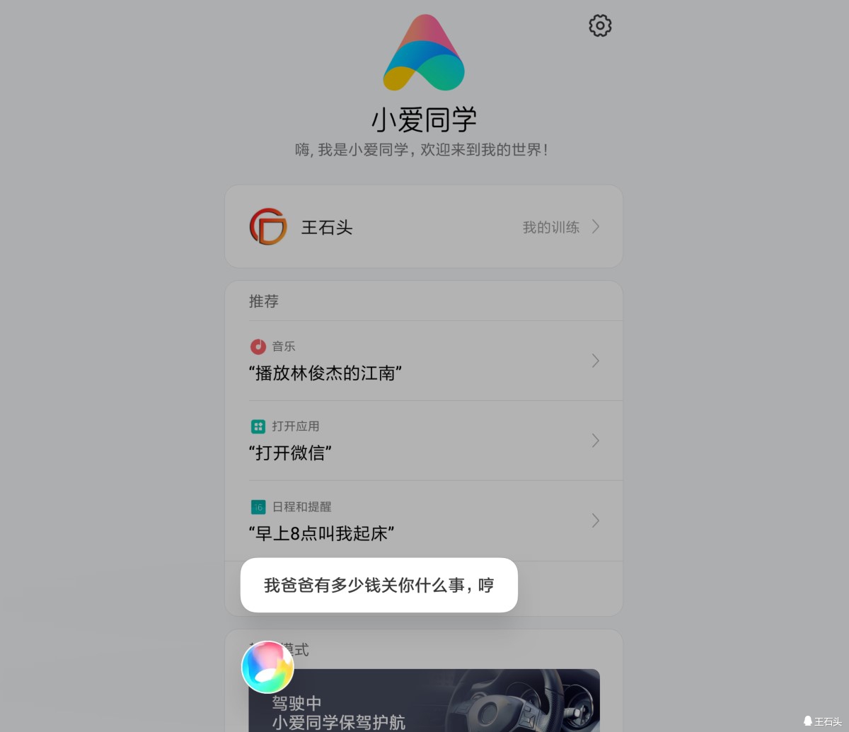 在小爱同学取得了如此成绩之后,小米创始人雷军也微博上进行了一番宣传,3000万用户最喜欢问小爱同学的问题,聊得最多的则是“你会干点什么”、“几点啦”、“声音小一点”等常规问题。被撩得最多的问题则是“马冬梅”、“我吃火锅你吃火锅底料”,而最让人感到有趣的就是排在第三的问题:雷军有多少钱。看来小米的用户都非常想知道雷军有多少钱。