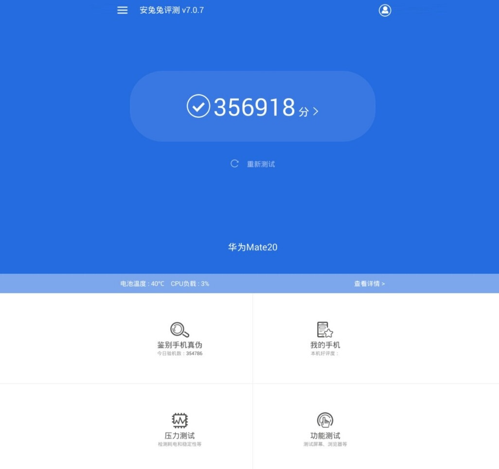 相信大家最关心的就是麒麟980的性能究竟如何了,早在几个月前就有曝光Mate20的安兔兔跑分为35万,但安兔兔官方并未确认。按照麒麟960在安兔兔v7中的成绩大概是16万分左右,而麒麟970的平均成绩则能够接近21万分,而目前公认的旗舰标杆骁龙845平均跑分成绩能超过27万。麒麟980最终能取得怎样的成绩,能否对骁龙845产生压倒性的优势,还是等产品发布后再看吧。