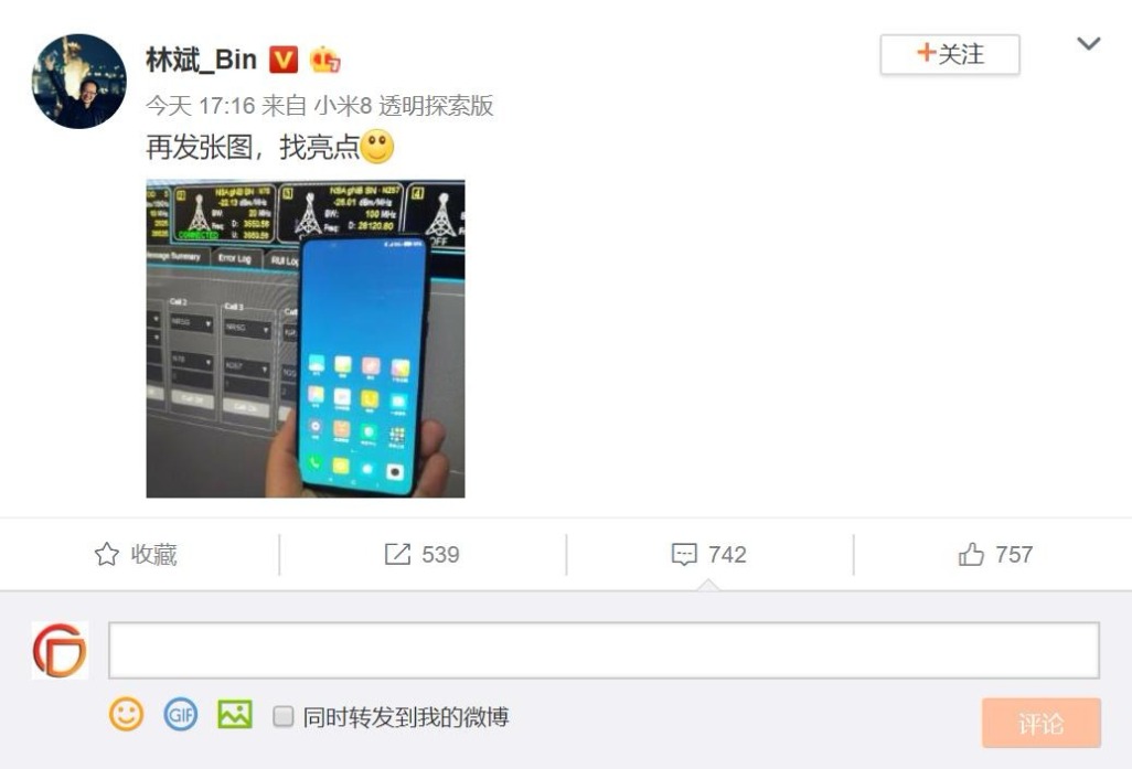 刚刚还研究着前几日林斌发的曝光图,让人没想到的是,现在又发了一条微博,晒出了一张图,同时还表示让大家找找亮点。眼尖的我一眼就看到右上角标识了的5G信号。也就是说这款疑似小米MIX3的机型很有可能支持5G通信。