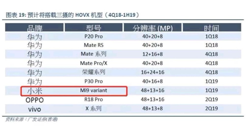 当然,现在的成绩对小米来说并不是终点,一切厚望都被寄托在了下一代旗舰小米9身上。根据披露的报告显示,小米9将会搭载索尼IMX 586 48MP传感器,同时还会采用后置三摄设计,具体的组合为48MP+13MP+16MP。