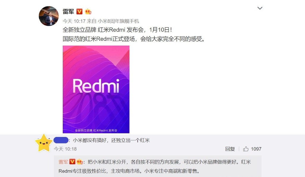 从小米紧密的筹划来看,也有网友对此表示不认可,并在雷军的微博上留下了嘲讽的话:“小米都没有搞好,还独立出一个红米来。”现在小米又在捣鼓不太成熟的可折叠产品,毕竟在整个市面上,根本没有一款像样的可折叠产品,有网友认为小米上市,市场份额重返全球前四之后,雷军开始膨胀了。