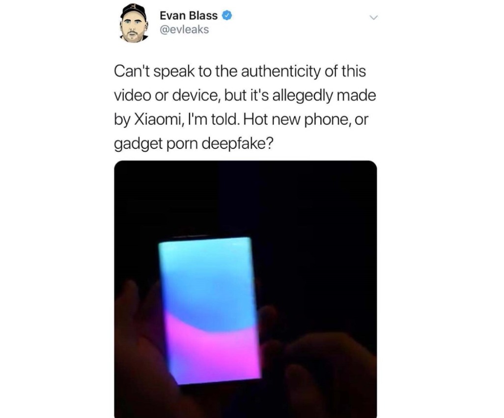 Evan Blas是推特上有名的爆料大神,他今天发布了一条疑似是小米折叠屏手机的上手操作视频,文案写道:“无法确认该视频真实性,但据说这是小米家的。是新手机还是电子设备界的 DeepFake?”。